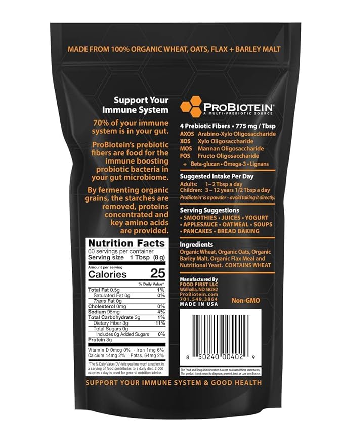 - BEST VALUE – The 1 pound foil pack gives you 60 servings of ProBiotein, at under 60 a day. The pack has a resealable zipper for maximum freshness. One 7.5g tablespoon of ProBiotein daily gives you 4 prebiotic fibers to help support the probiotic bacteria in your digestive tract.