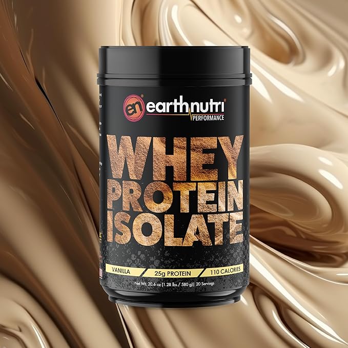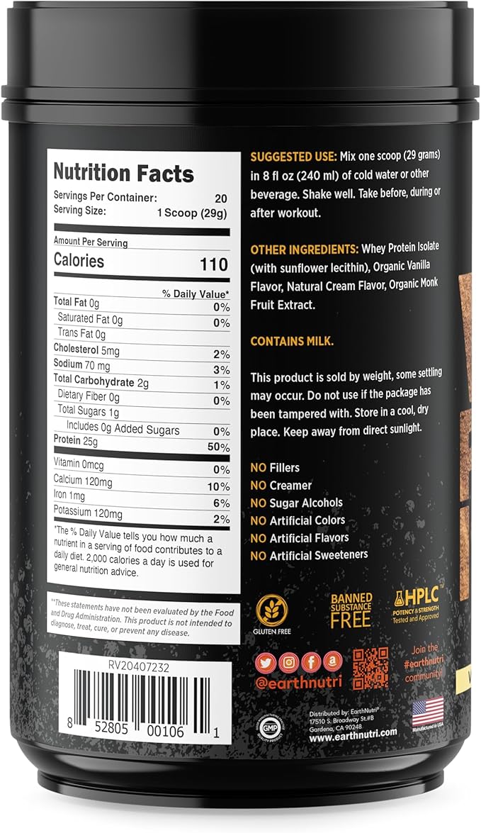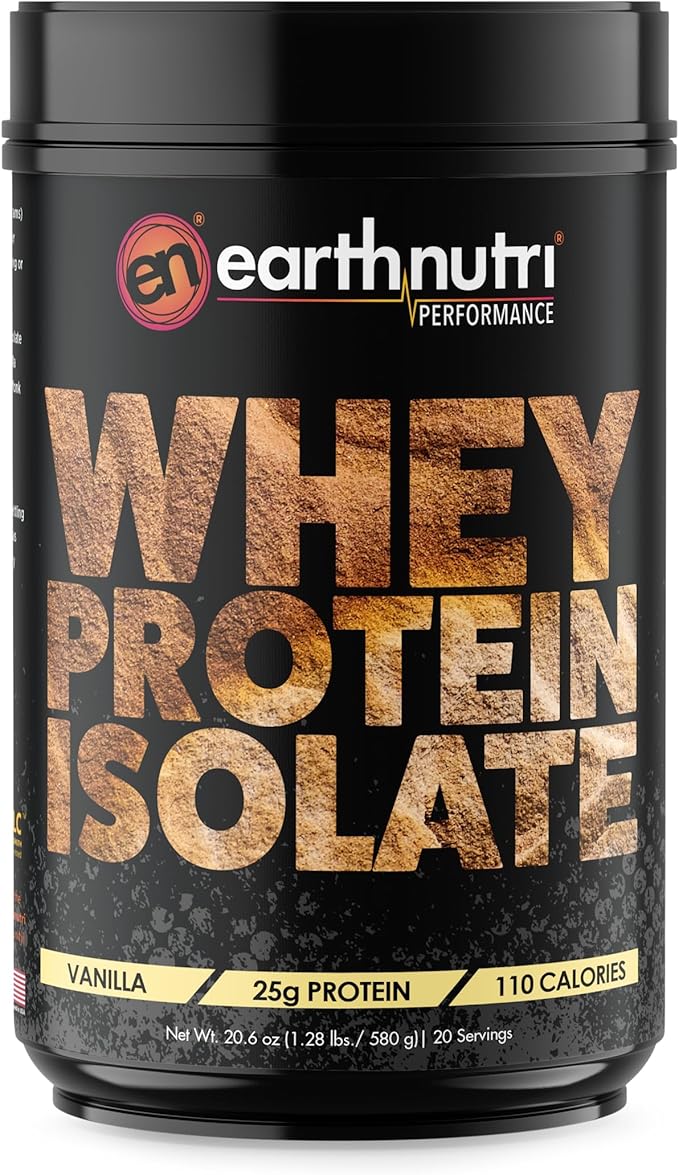 EarthNutri - Whey Isolate Protein Powder for Workout and Muscle Growth Support, 25g of Protein, Non-GMO and Organic Vanilla Flavor Whey Protein Isolate, Vanilla Flavor, 20 Servings