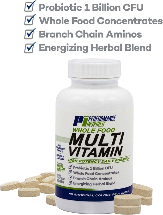 Performance Inspired Nutrition - Whole Food Multi Vitamin – 1 Billion CFU Probiotics – BCAAs – Energizing Herbal Complex - 90 Count (Pack of 1)