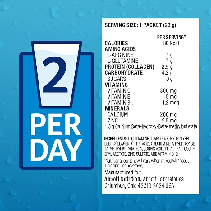 Juven Therapeutic Nutrition Drink Mix Powder for Wound Healing Support, Includes Collagen Protein, Unflavored, 30 Count