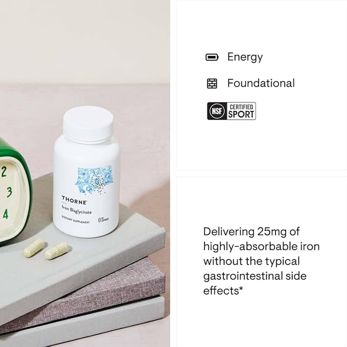THORNE Iron Bisglycinate - 25 mg Iron Supplement for Enhanced Absorption Without Gastrointestinal Side Effects - NSF Certified for Sport - Gluten-Free - 60 Capsules