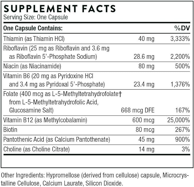 THORNE B-Complex #12 - Vitamin B Complex with Active B12 and Folate - 60 Capsules