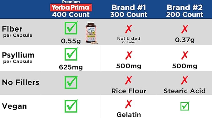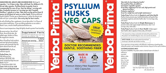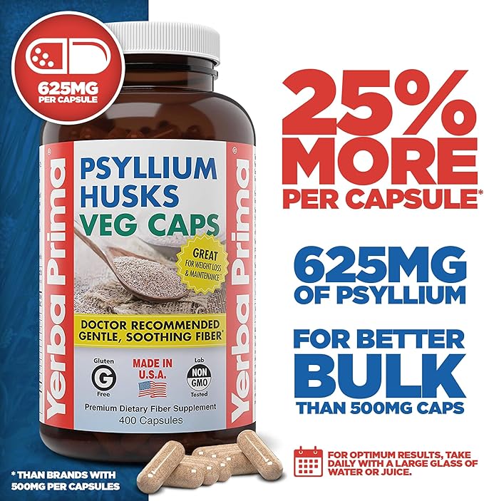 - ✅ YERBA PRIMA PSYLLIUM HUSK CAPSULES: 100% Pure, Whole Husks. Made in Ashland, Oregon. Doesn't waste your time on subpar brands that contain brown rice fillers. Yerba Prima is the premium choice.