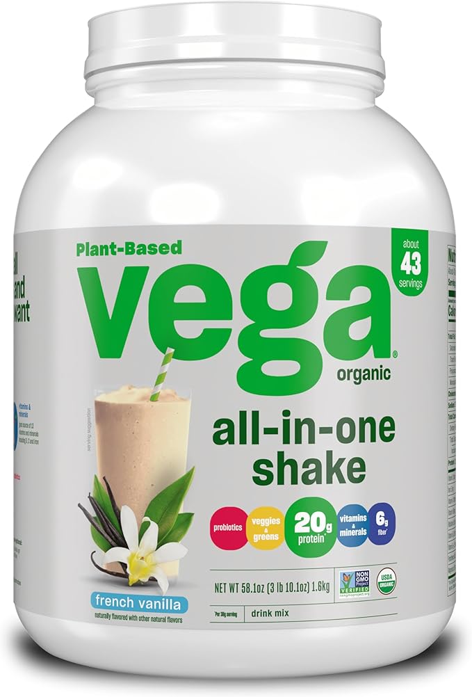 - MEAL REPLACEMENT SHAKE, blend a serving of Vega Organic All-In-One Shake with your favorite nut butter or a serving of fruit to make a delicious plant-based meal replacement smoothie for people on the go.