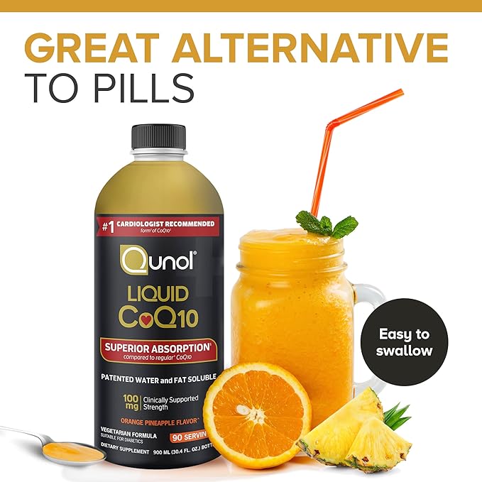Qunol CoQ10 Liquid Supplement 100mg, Superior Absorption, Natural Form of Coenzyme Q10, Antioxidant for Heart Health, Orange Pineapple Flavored, 90 Servings, 30.4 oz Bottle