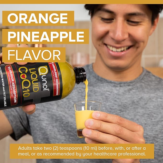 - QUNOL LIQUID COQ10 FOR HEART HEALTH” CoQ10 helps support heart and vasuclar health because it plays a role in producing the energy needed by our hearts and helps promote healthly pressure levels. Directions: Adults take two teaspoons (5 ml each) before, with, or after a meal or as recommended by your healthcare professional