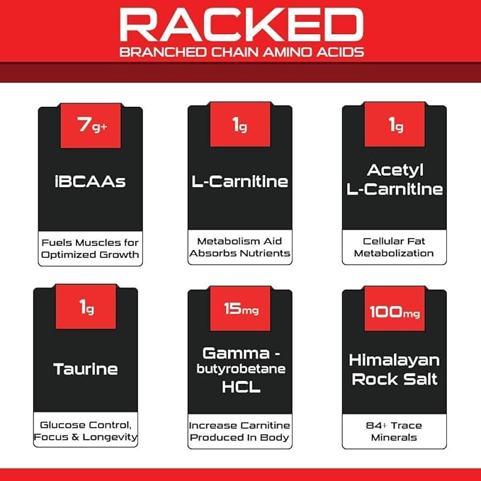 - SOURCED FROM PLANTS - BCAAs carry around the stigma of tasting horrible. This is because cheaper brands source their BCAAs from Horse hair or Duck feathers. RACKED is sourced from plants which allows for less flavor masking, thus better flavor.