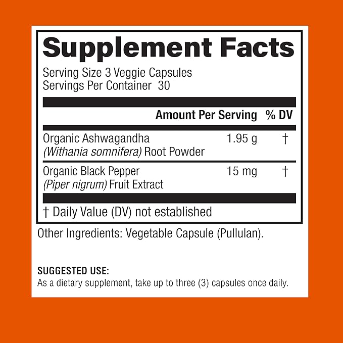 - Organic Ashwagandha: With so many subpar products Ayurveda products on the current market, we saw the need for a high-quality supplement that actually works. Our Ashwagandha supplement is made with Organic Ashwagandha root powder. No leaves, no stems, no fillers. Just pure ashwagandha root with black pepper extract, the way it's been used in India for over 2500 years