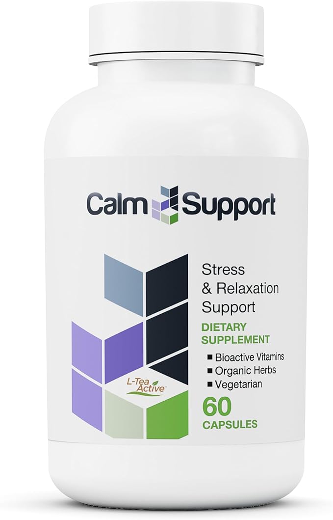 CalmSupport: Stress & Relaxation Support - Ashwagandha, Passion Flower, Valerian Root, Ginger, GABA, Velvet Bean, Motherwort, Oat Seed, Phyllanthus, L-Theanine, L-Tryptophan, Folate, C,B1,B6,B12,Zinc