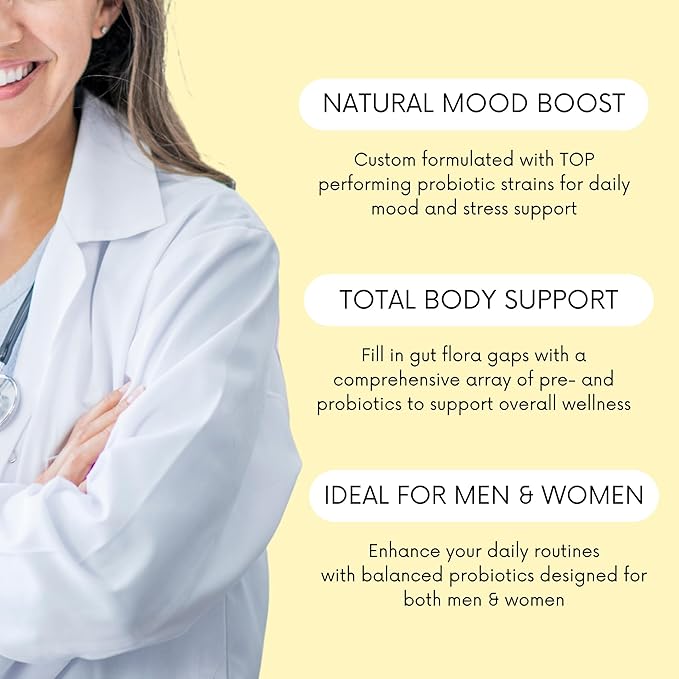 Probiotics 30 Billion CFU - Bifidus Mood Support Supplement w/prebiotics & probiotics for Women and Men - Mood & Digestion Support- Histamine Free - Natural Mood Boost - 60 Days Supply, Non-GMO