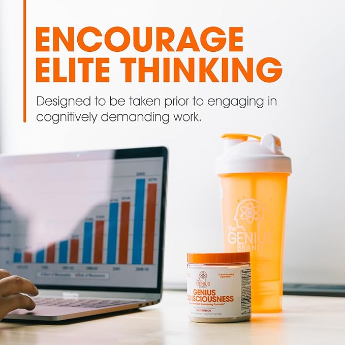 - Awaken Your Mind: Genius Consciousness by The Genius Brand brings together strong, natural brain-enhancing ingredients in one great-tasting daily drink for high-performance thinking.* Formulated to help support improved memory, concentration, learning, recall, mood, and focus.* Watermelon flavor. 15 scoops per container.