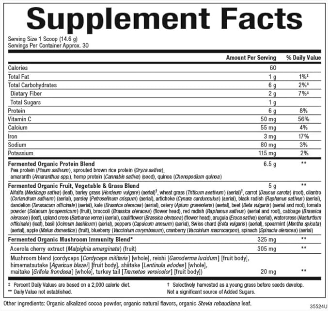 - 100% fermented, 100% organic: Formulated to promote an active and healthy lifestyle. Provides a wide range of nutrients and antioxidants in a single, convenient serving*