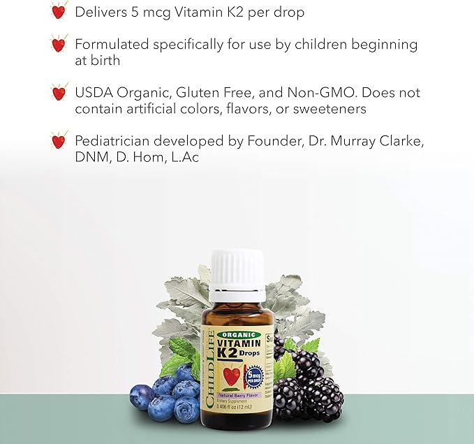 - SUPPORTS BONE HEALTH - ChildLife Essentials Organic Vitamin K2 promotes healthy bone development and helps maintain proper calcium levels in growing children