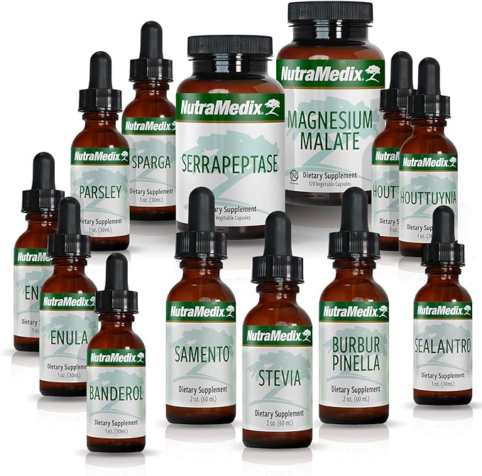 - Included Products - Includes Banderol 1oz, Burbur-Pinella, Enula (2 units), Houttuynia (2 units), Magnesium Malate, Parsley, Samento 2oz, Sealantro, Serrapeptase, Sparga, and Stevia (3 units).