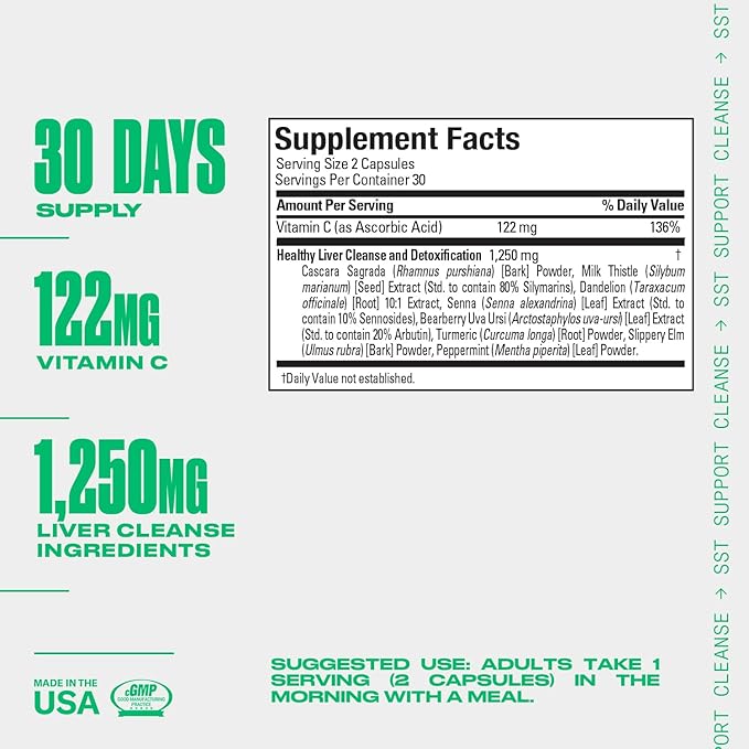 - Detox: SST Support Cleanse helps protect the liver from toxins while supporting your daily health and performance through Milk Thistle, Turmeric and other ingredients.. 60 capsules per pack.