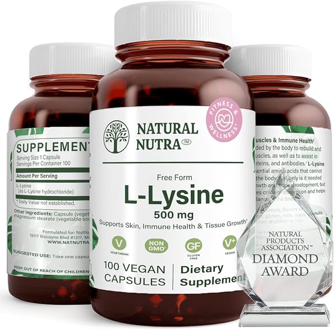 Natural Nutra L Lysine HCl, Promotes Bone Health and Growth, Improve Calcium Absorption, Support Faster Workout, Improve Vitamin C Absorption, Non-GMO, Vegan, 500 mg, 100 Capsules.