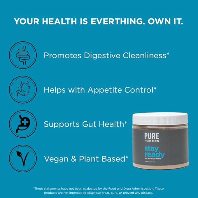 Pure for Men Original Cleanliness Stay Ready Fiber Supplement Powder | Helps Promote Digestive Regularity | Psyllium Husk, Aloe Vera, Chia Seeds, Flaxseeds | Proprietary Formula | 180 gm Vegan Blend