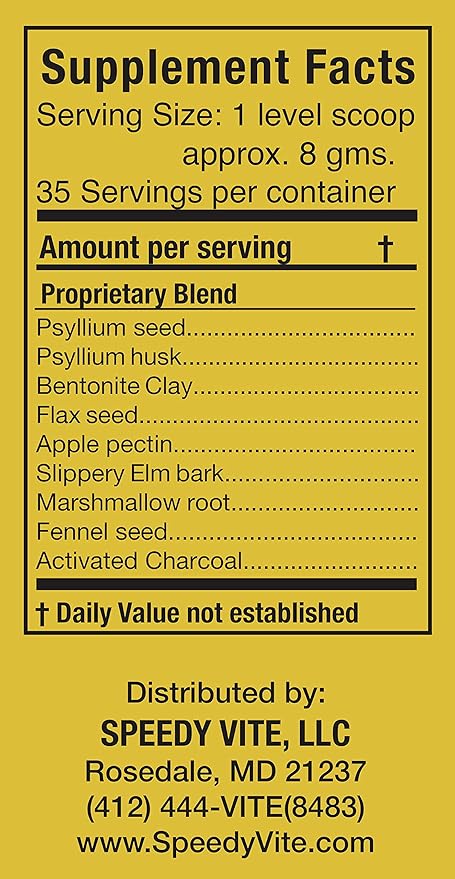 SpeedyVite® Colon Detox Organic Supports Natural Removal of Toxins* Clay Bentonite Charcoal Psyllium Flax Apple Fiber Slippery Elm Fennel 10oz All Natural Powder (2 x 10oz *Value Pack*)