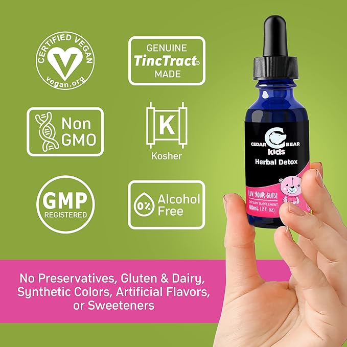 Cedar Bear Herbal Detox for Kids is a Liquid Herbal Supplement That Helps The Immune System & Protects Organs That are Often affected 2 fl oz / 60 ml