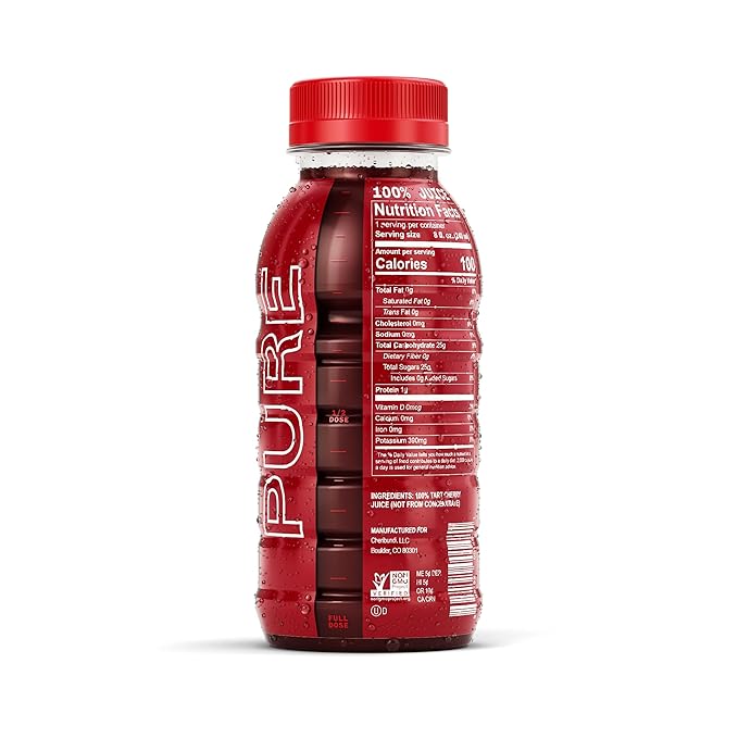 - CHERIBUNDI PURE: Strip down your recovery ritual to the bare essentials, just 100% tart cherry juice; pure, simple, and powerful with 60 tart cherries per 8oz serving