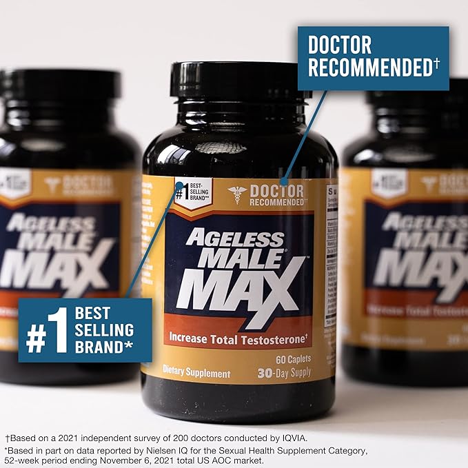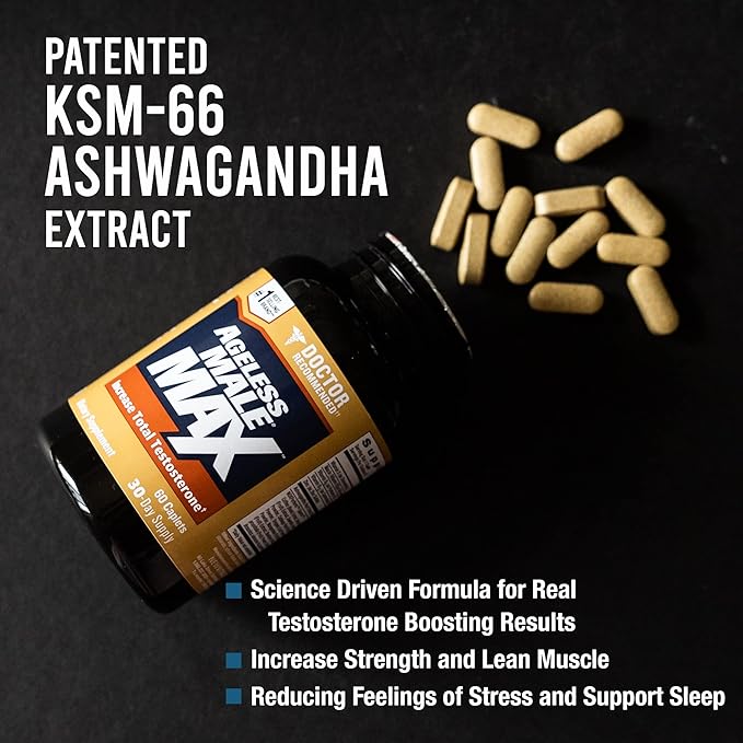 - BOOST TOTAL TESTOSTERONE: Ageless Male Max has an ingredient called KSM-66 which is shown in a clinical study to boost TOTAL testosterone, not just free T. Now that’s a difference!