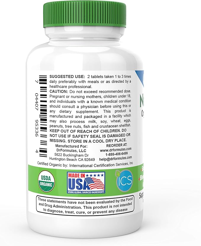 DrFormulas Organic Prebiotic Fiber for Constipation Relief | Nexabiotic Superfood Tabs for Probiotic Digestive Health, 60 Tablets