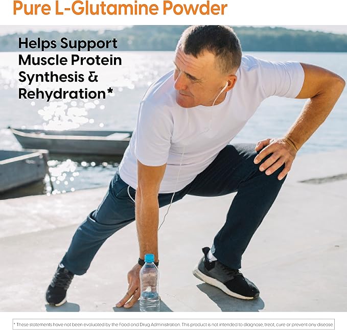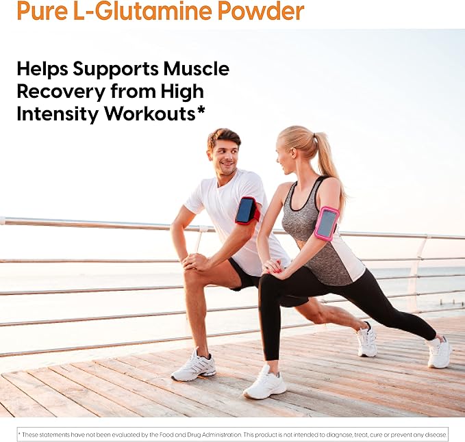 - RECOVERY OF MUSCLE STRENGTH – L-Glutamine helps promote muscle growth and support athletic performance. L-Glutamine is used for muscle production, that means the body is actively using it to repair injured or damaged muscle tissue. Makes it a great supplement to take to reduce recovery time, boost muscle mass or ease minor aches and pains.
