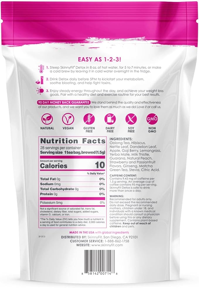 SkinnyFit Detox Tea: All-Natural, Laxative-Free, Supports A Healthy Weight, Helps Reduce Bloating, Natural Energy, Supports Immune System, Vegan, 28 Servings