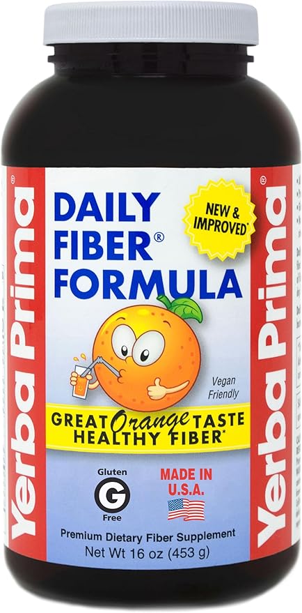 Yerba Prima Orange Flavored Daily Fiber Formula 16 oz Powder - Great Tasting, Premium Bulking Supplement for Regularity Support, Contains 5 Fiber Types, Made in The USA, Non-GMO, Gluten Free