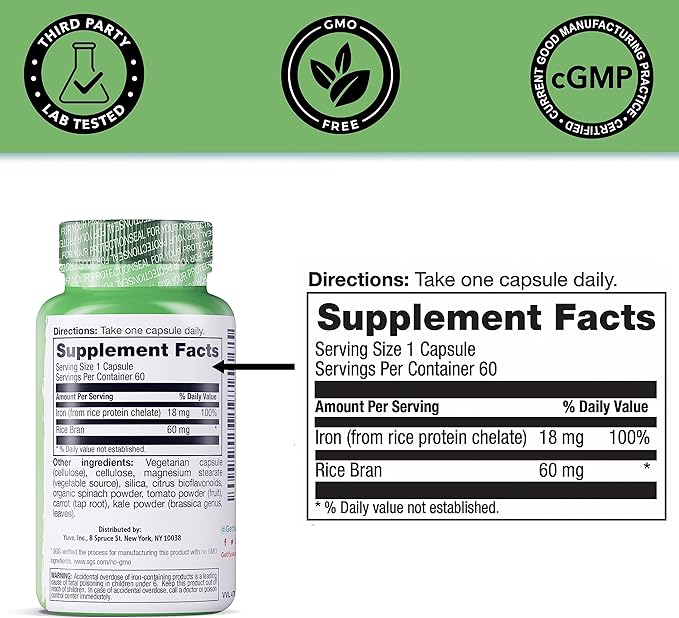 - We Stand Behind our Products: Our optimal high potency all-natural Whole Food Based Iron supplement advanced formula is proudly made in USA in a safe facility that is both NSF and GMP certified. Tested by third party research laboratories. Unlike tablets, lozenges or chewables, these capsules are small and easy to swallow. Now 60days money back guarantee.