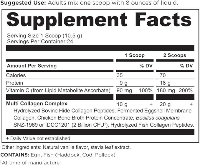 - You will receive (1) tub of Multi Collagen Protein Powder, Vanilla, 24 servings