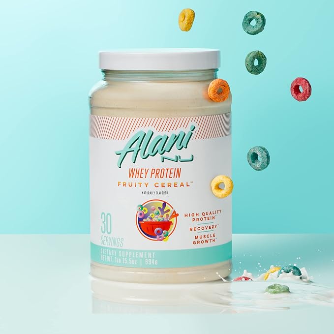 Alani Nu Whey Protein Powder Fruity Cereal | 23g Protein with Low Sugar & Digestive Enzymes | Meal Replacement Powder | Low Fat Low Carb Whey Isolate Protein Blend | 30 Servings