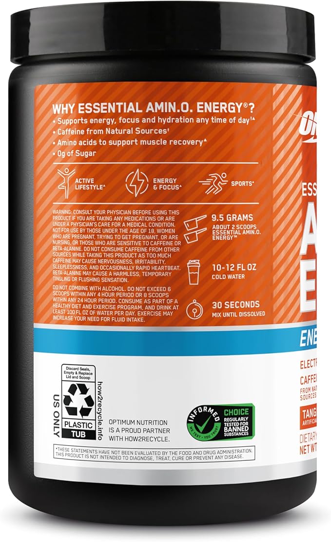 - One 10.5-ounce package (30 servings) of Optimum Nutrition Amino Energy Plus Electrolytes Energy Drink Powder, Tangerine Wave Flavor