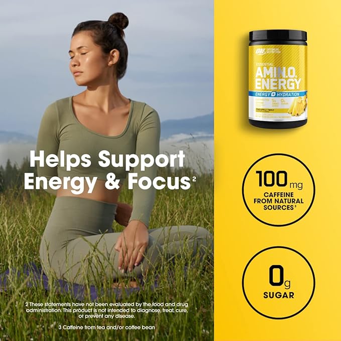 - One 10.5-ounce package (30 servings) of Optimum Nutrition Amino Energy Plus Electrolytes Energy Drink Powder, Pineapple Twist Flavor