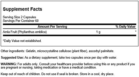 Swanson Full Spectrum Amla Fruit (Indian Gooseberry)-Ayurvedic Herbal Supplement Promoting Vitality & Energy Support-Packed with Phytonutrients to Support Wellness-(120 Capsules, 500mg Each) 2 Pack