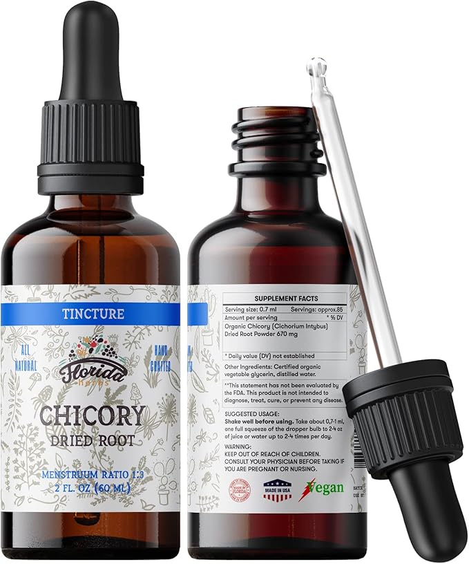 - HIGHEST QUALITY ORGANIC CHICORY TINCTURE (Cichorium Intybus) - Florida Herbs products consist entirely of pure ingredients, including wild plants and certified organic ingredients.