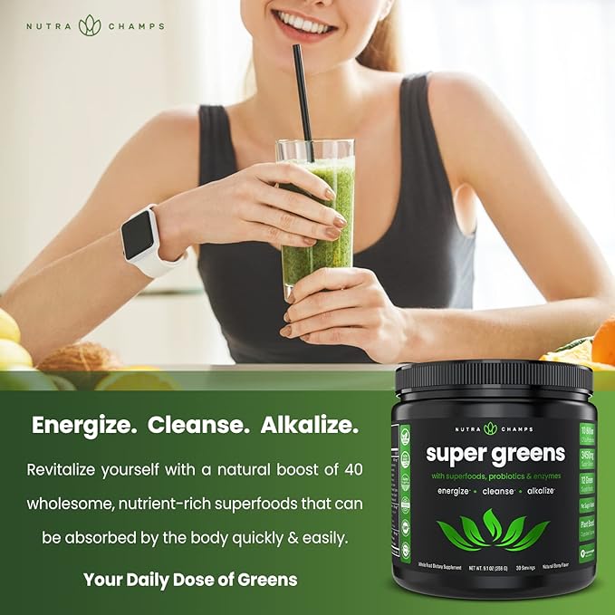 - Green Superfood Powder On-The-Go! - It's not always easy to get mixed greens in your diet. NutraChamps has you covered with spirulina powder, green powder and so much more for the perfect green juice! A quick & easy way to get your antioxidants supplement in your daily life.