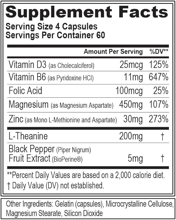 - Advanced Recovery Formula - Unlike basic ZMA supplements for men our zinc and magnesium supplement also features Folic acid Theanine and Black pepper extract for enhanced recovery and sleep benefits