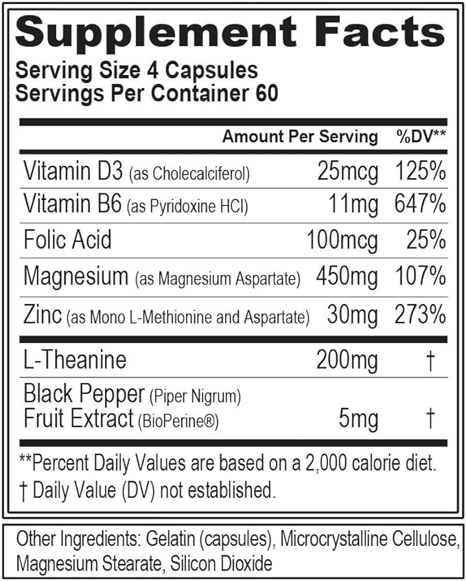 - Advanced Recovery Formula - Unlike basic ZMA supplements for men our zinc and magnesium supplement also features Folic acid Theanine and Black pepper extract for enhanced recovery and sleep benefits