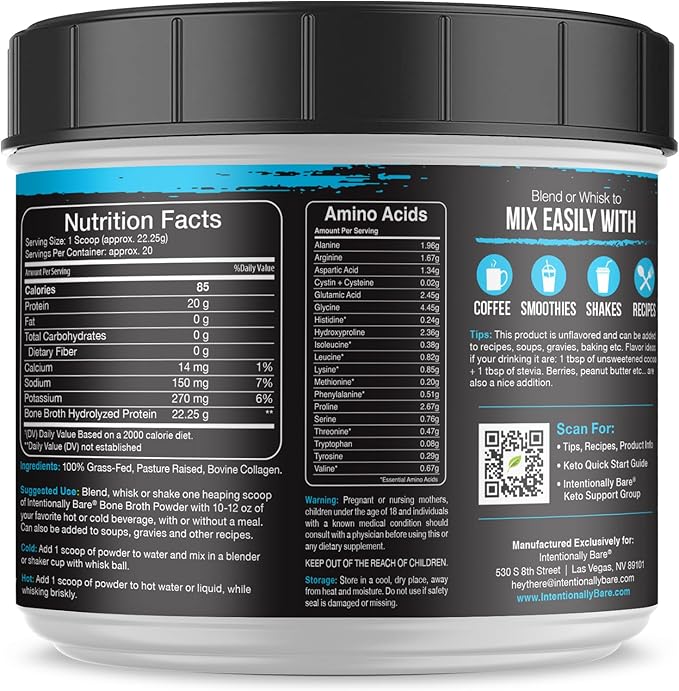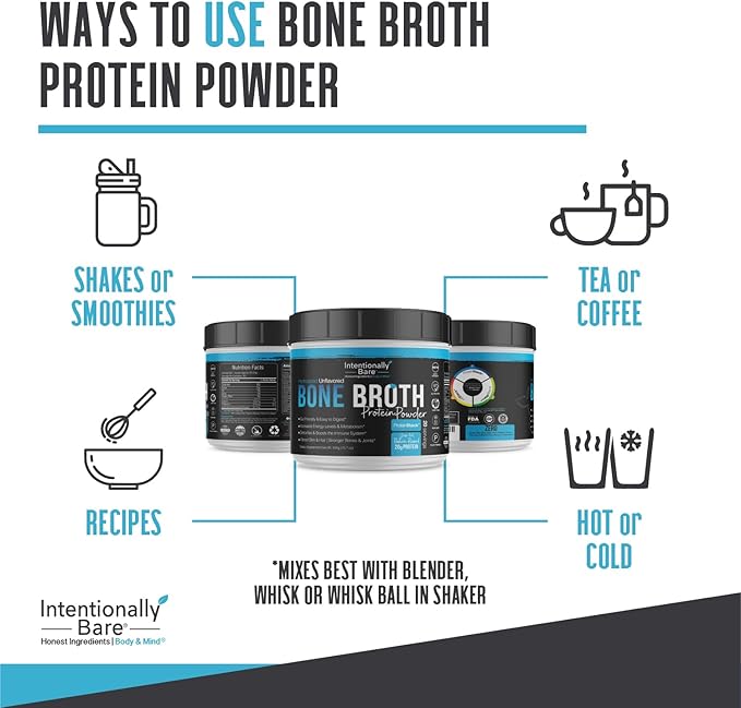 - CRAFTED WITH INTENT - Our Bone Broth Protein Powder, collagen type 1 and 3, is free from fillers, additives, sulfates, and maltodextrin. Manufactured in the USA, packaged in a BPA-free container.