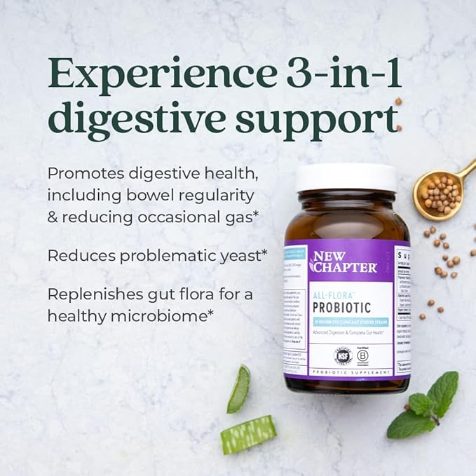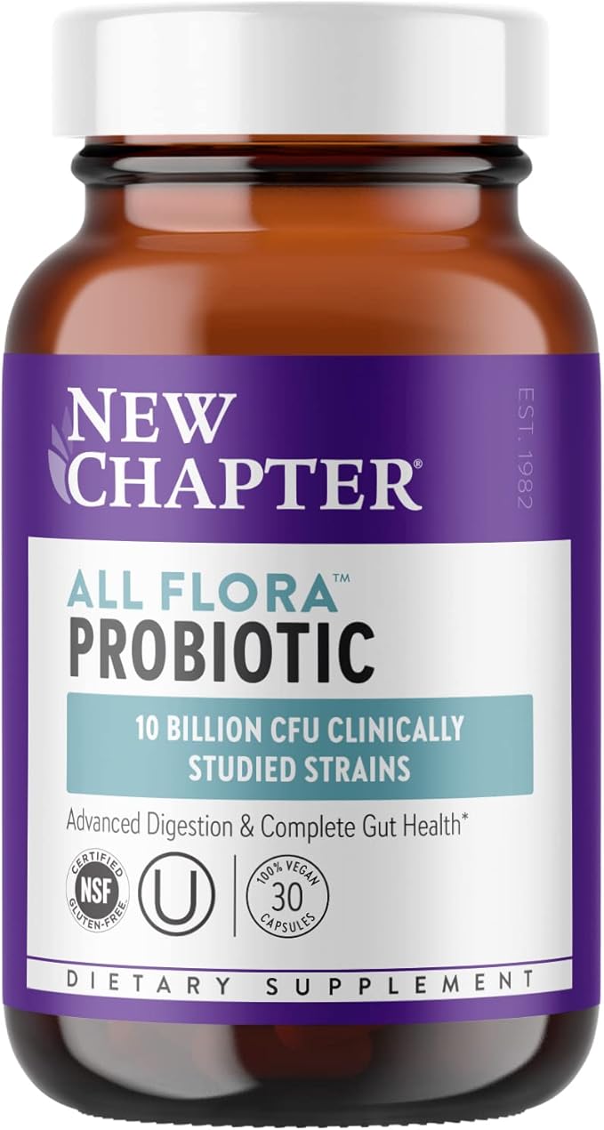 New Chapter Probiotic All-Flora - 30 ct (1 Month Supply) for Advanced Digestion & Complete Gut Health with Prebiotics + Postbiotics, Clinically Studied Strains, 100% Vegan, Non-GMO, Shelf Stable