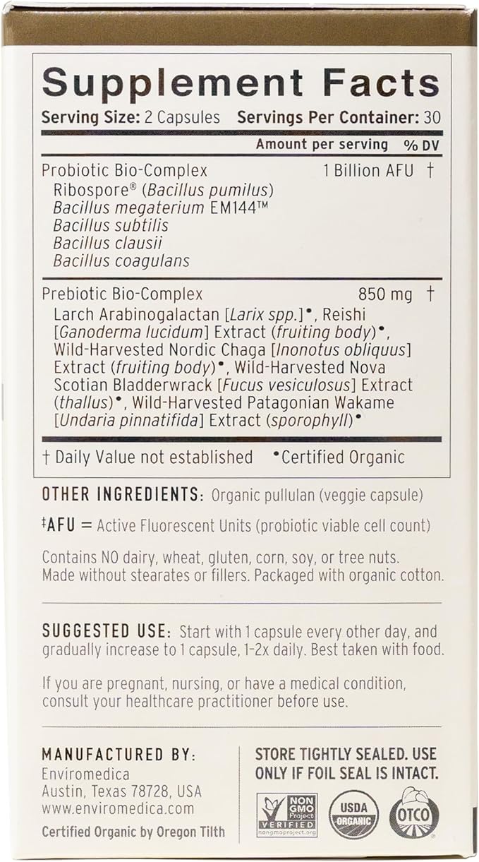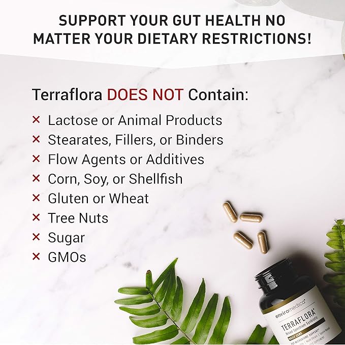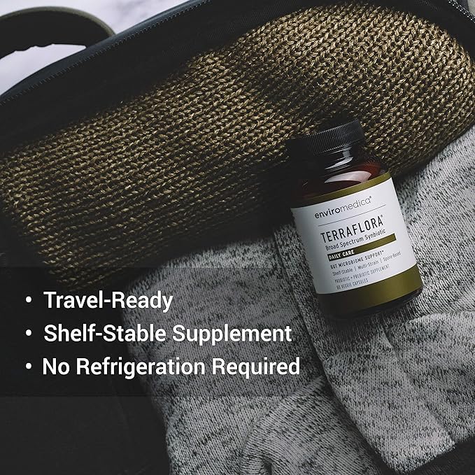 Terraflora Daily Care synbiotic of probiotics and prebiotics for Women and Men 60 ct, Soil Based, Shelf Stable, allergen Friendly Spore Based Supplement Capsules Promote Gut Health by Enviromedica