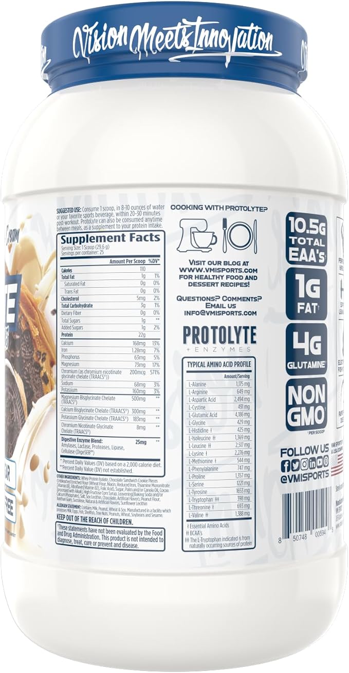 VMI Sports | ProtoLyte Whey Isolate Protein Powder | Low Calorie Whey Protein Powder for Weight Loss | Protein Powder for Muscle Gain | Digestive Enzymes (Peanut Butter Cookies & Cream, 1.6 Pounds)