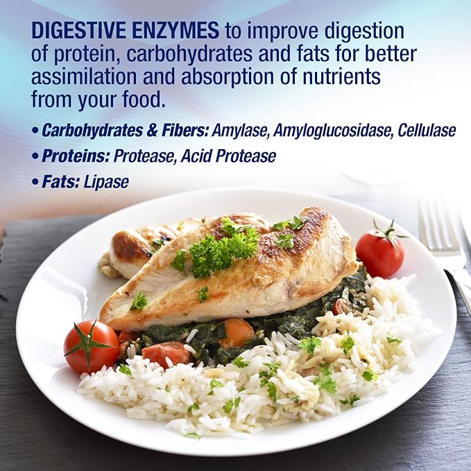 - Aid Digestion – The comprehensive digestive enzyme blend supports protein, carbohydrate, and fat digestion and absorption.