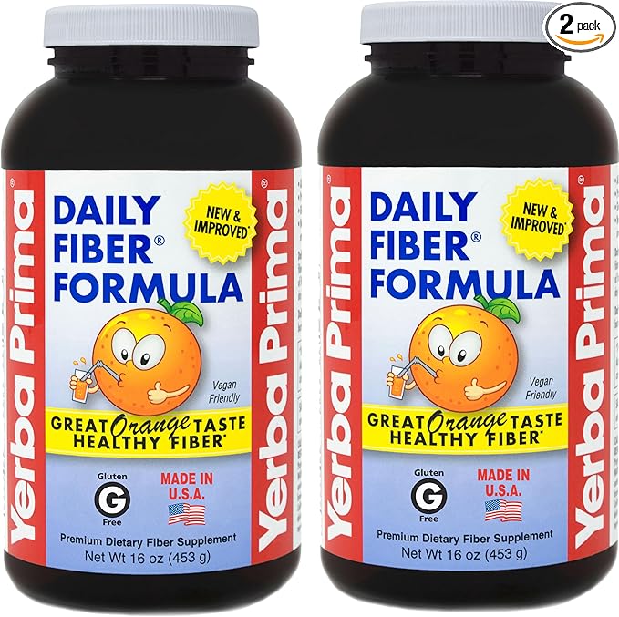 Yerba Prima Daily Fiber Formula 16 oz (Pack of 2) - Premium Dietary Fiber Supplement, Non-GMO, Gluten Free, Made in The USA, Orange Flavor