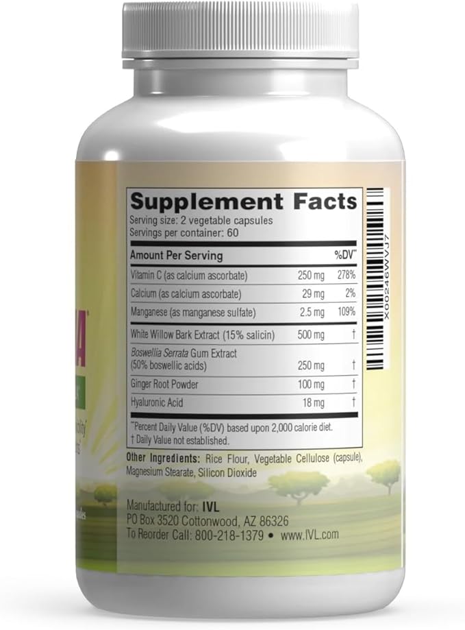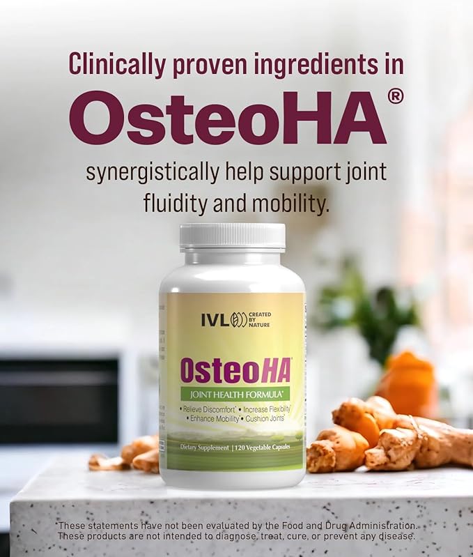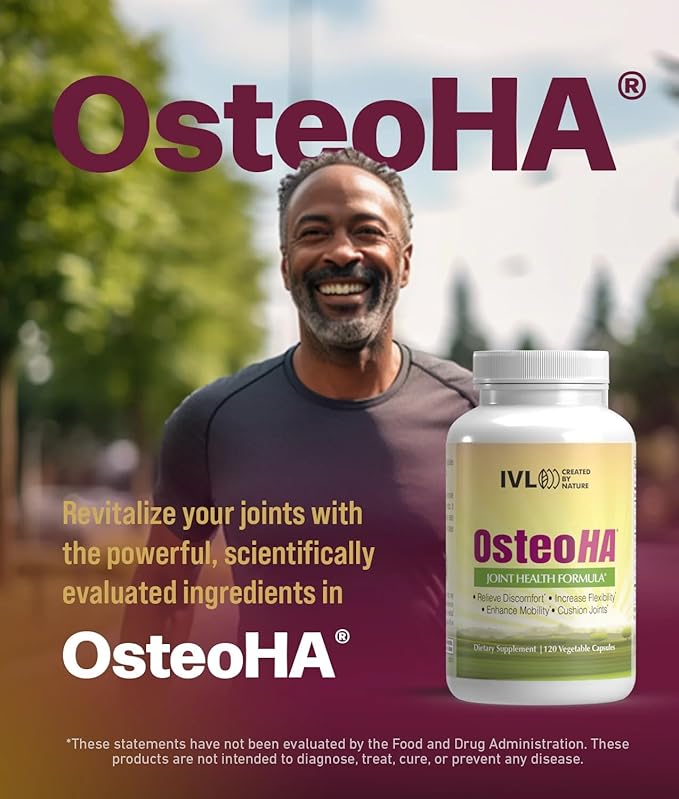 IVL OsteoHA Joint Health Formula - Joint Health Support Supplements - with Hyaluronic Acid - Flexibility, Mobility, Lifestyle - with Boswellia, Vitamin C (120 Vegetable Capsules)