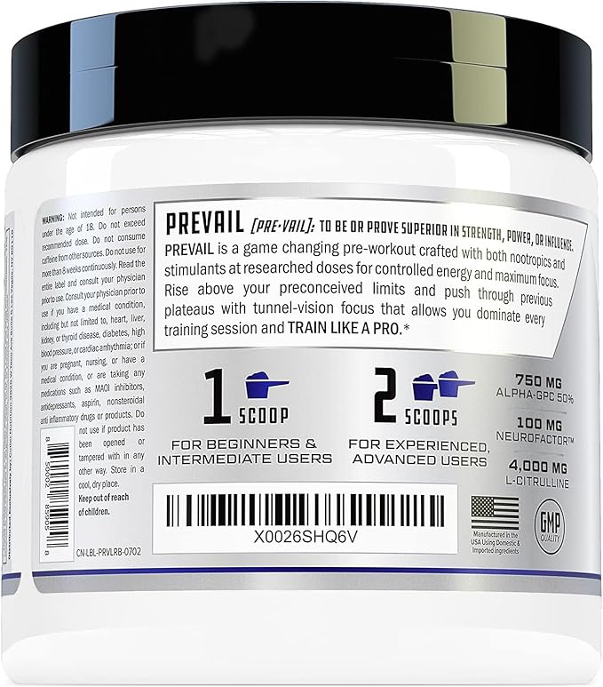 Prevail Pre Workout Powder with Nootropics: Pre Workout for Men and Women, Cutting Edge Energy and Focus Supplement with L Citrulline, Alpha GPC, L Tyrosine, Neurofactor | Rainbow Freeze, 40 SRV