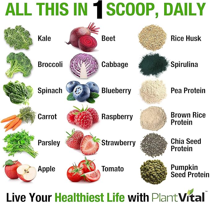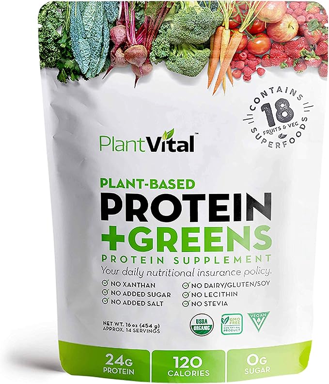 Plantvital Unflavored Organic Vegan Protein Powder - 18 Superfoods, Veggies and Probiotics - Organic Plant-Based Protein Powder - All BCAAβs, Gluten Free - 16oz -1 Pouch