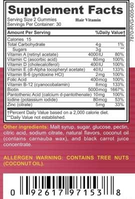 - Bariatric formula to nourish hair from within with Vitamin A, Vitamin C, Vitamin D, Vitamin E, Vitamin B12, Biotin, Pantothenic Acid, Iodine, Zinc, Coconut Oil.
