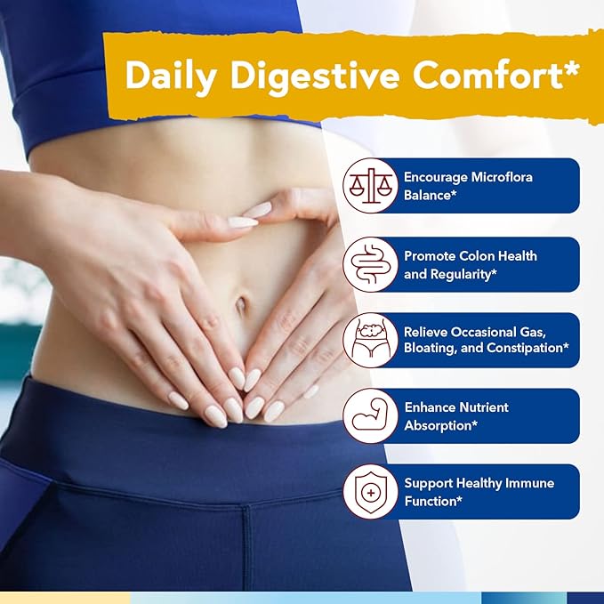 - Product Benefits : Promote colon health and regularity*, Support healthy immune function and digestive balance*, Prevent occasional gas, bloating, and constipation* Promote colon health and regularity*, Support healthy immune function and digestive balance*, Prevent occasional gas, bloating, and constipation*